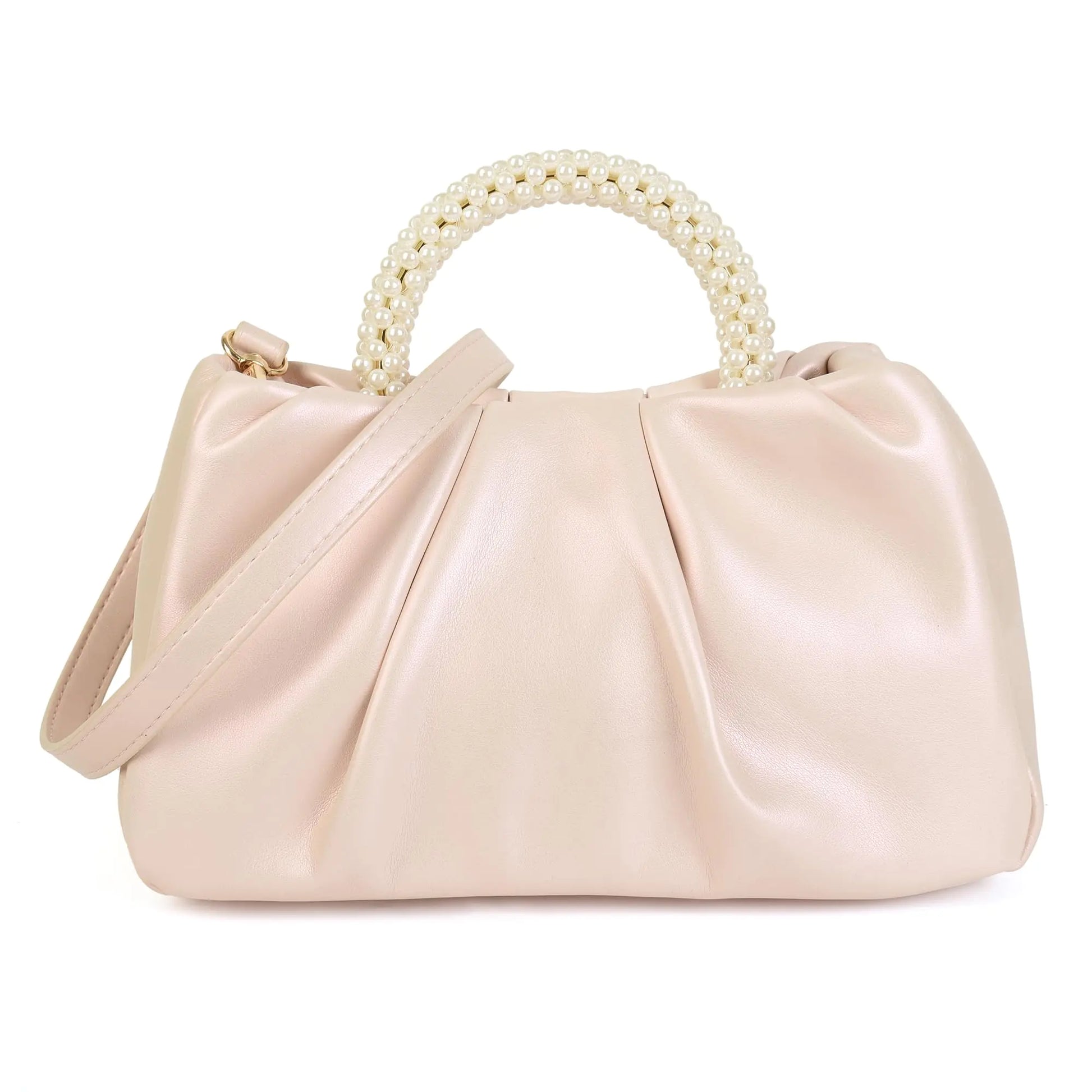 Valleycomfy Evening Clutch Pearl Purses for Women Ladies Soft Leather Cloud Crossbody Bags Shoulder Bag for Party/Wedding/Cocktail/Prom/Club Pink Small