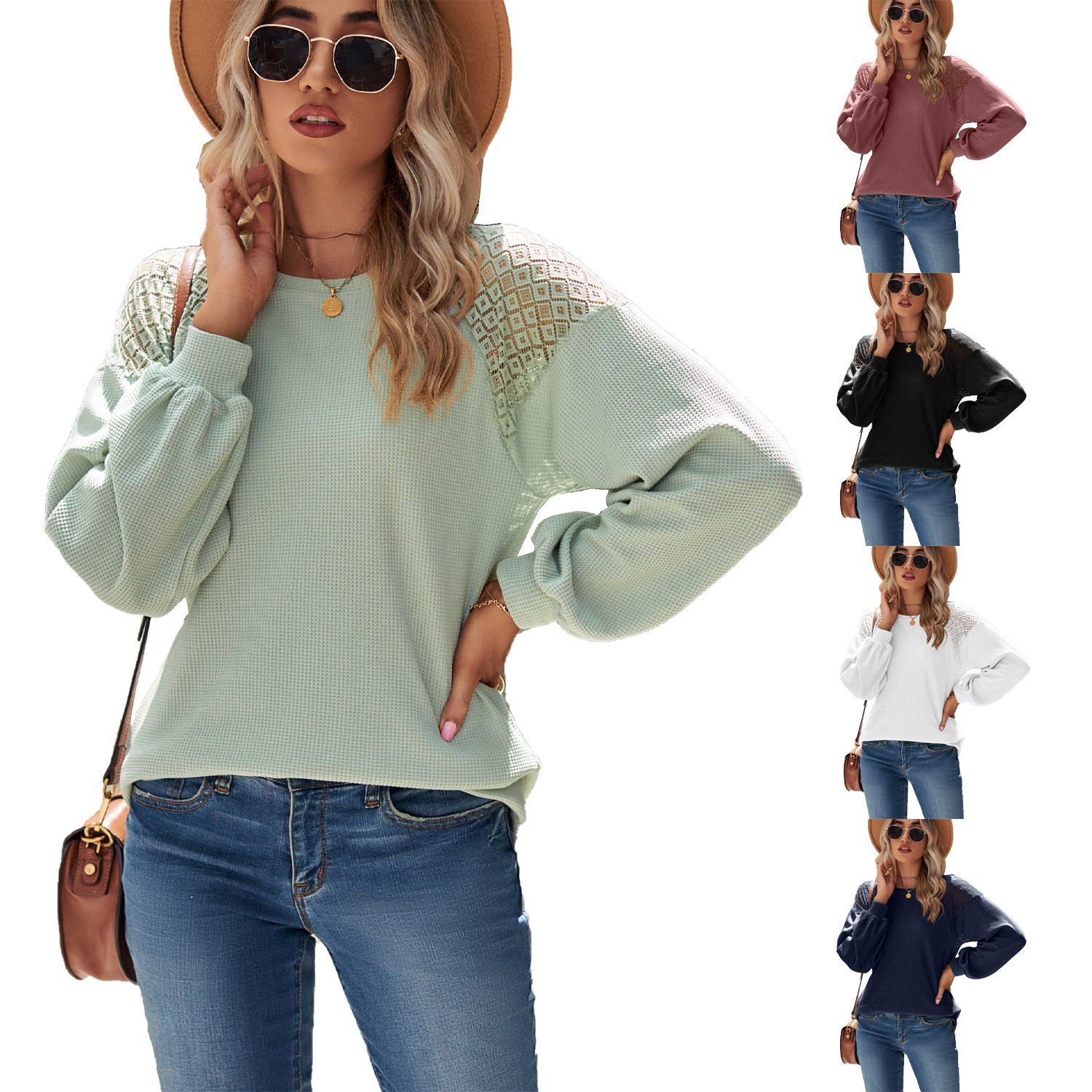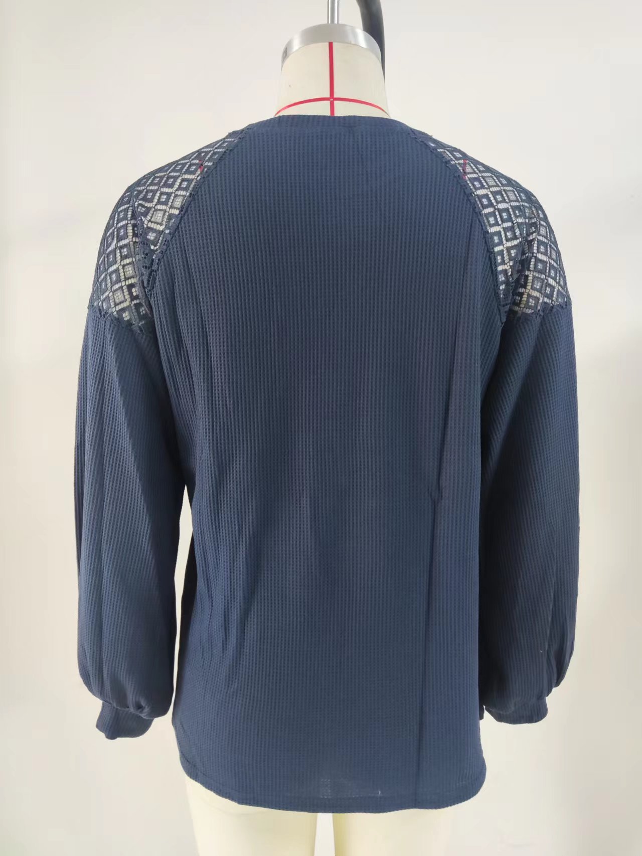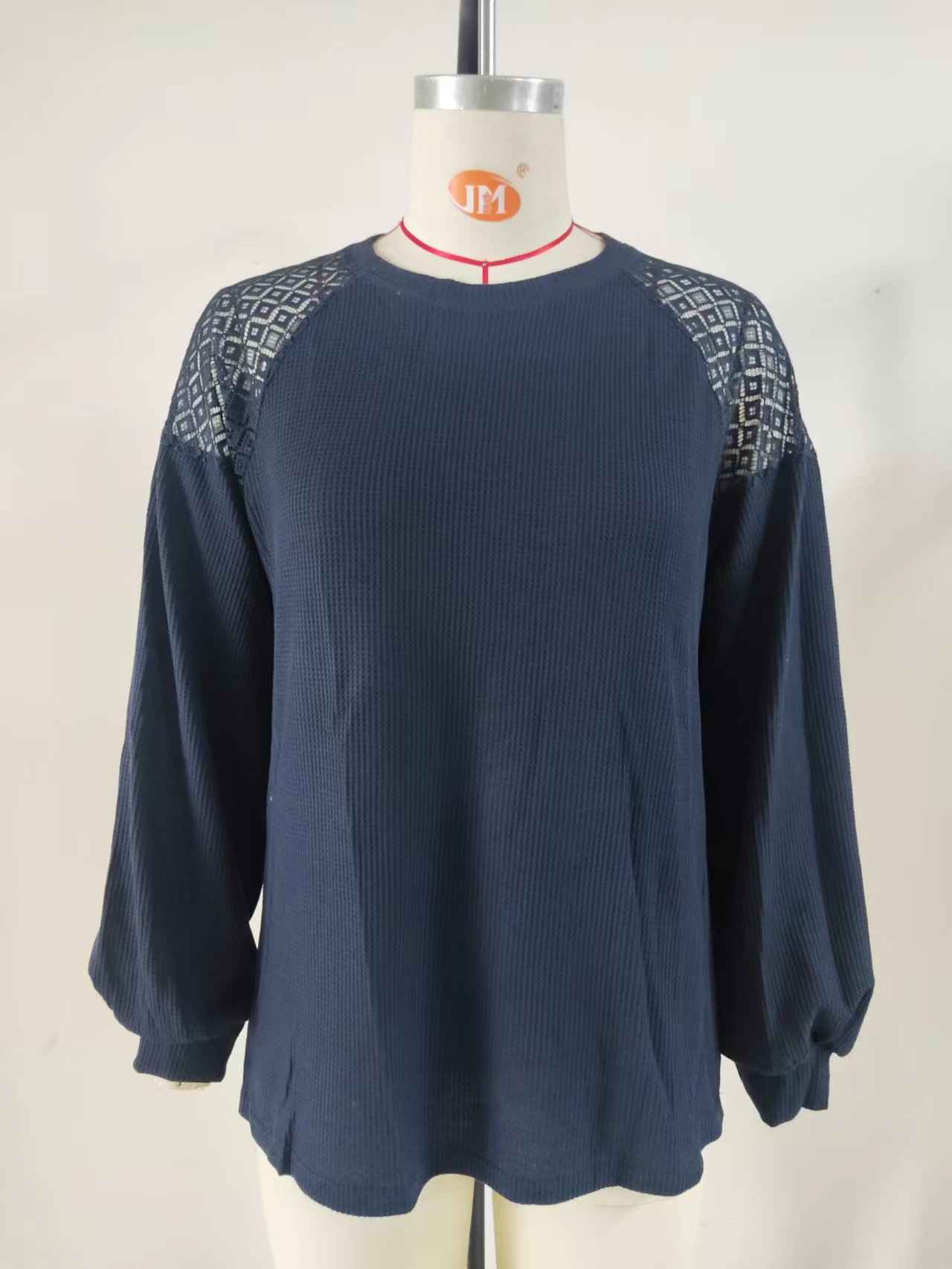 Women's Long-sleeved Lace Round Neck Loose T-shirt